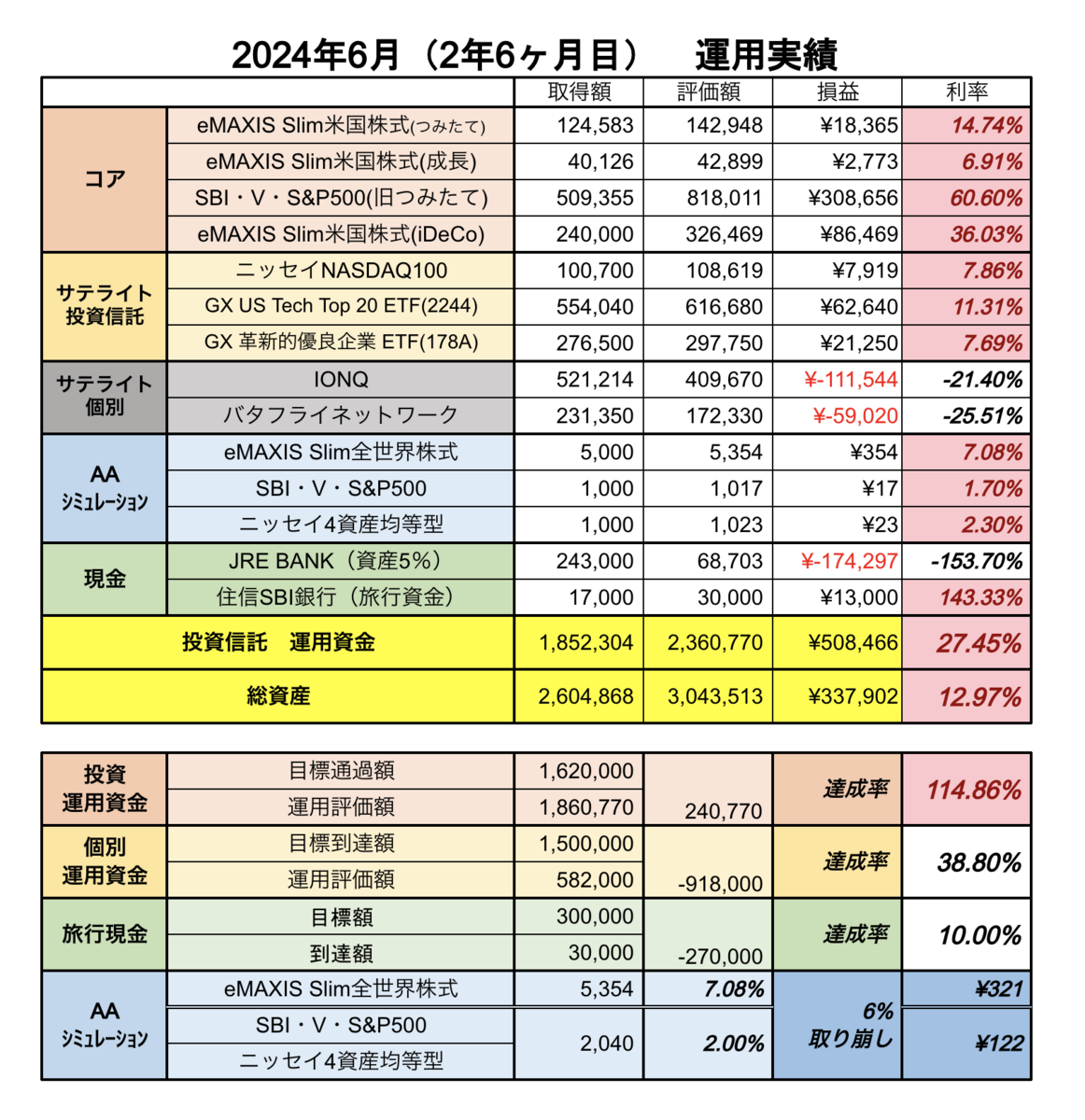 2024年6月【2年6ヶ月】の投資実績。60歳でのセミリタイア戦略